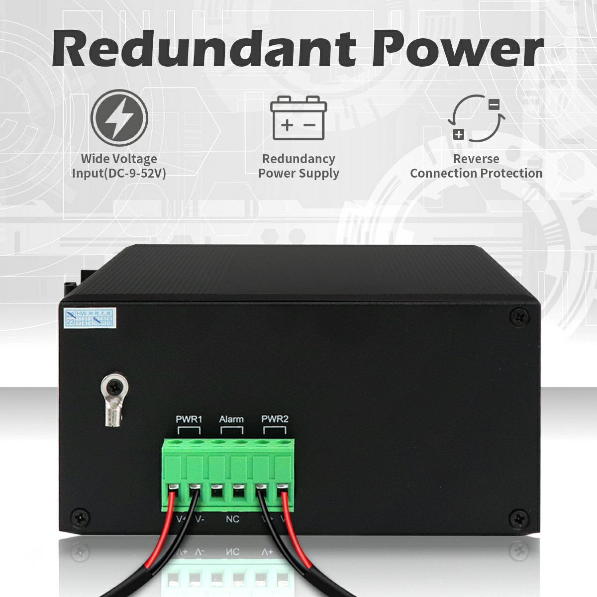 2 درگاه SFP 1000 مگابایتی SM: 1310 نانومتر/1550 نانومتر، 20 کیلومتر، 1490 نانومتر/1550 نانومتر، 40 تا 120 کیلومتر؛MM: 1310 نانومتر، 2 کیلومتر؛8x10/100/1000M UTP RJ45 (پشتیبانی از سنجش خودکار MDI/MDIX) |