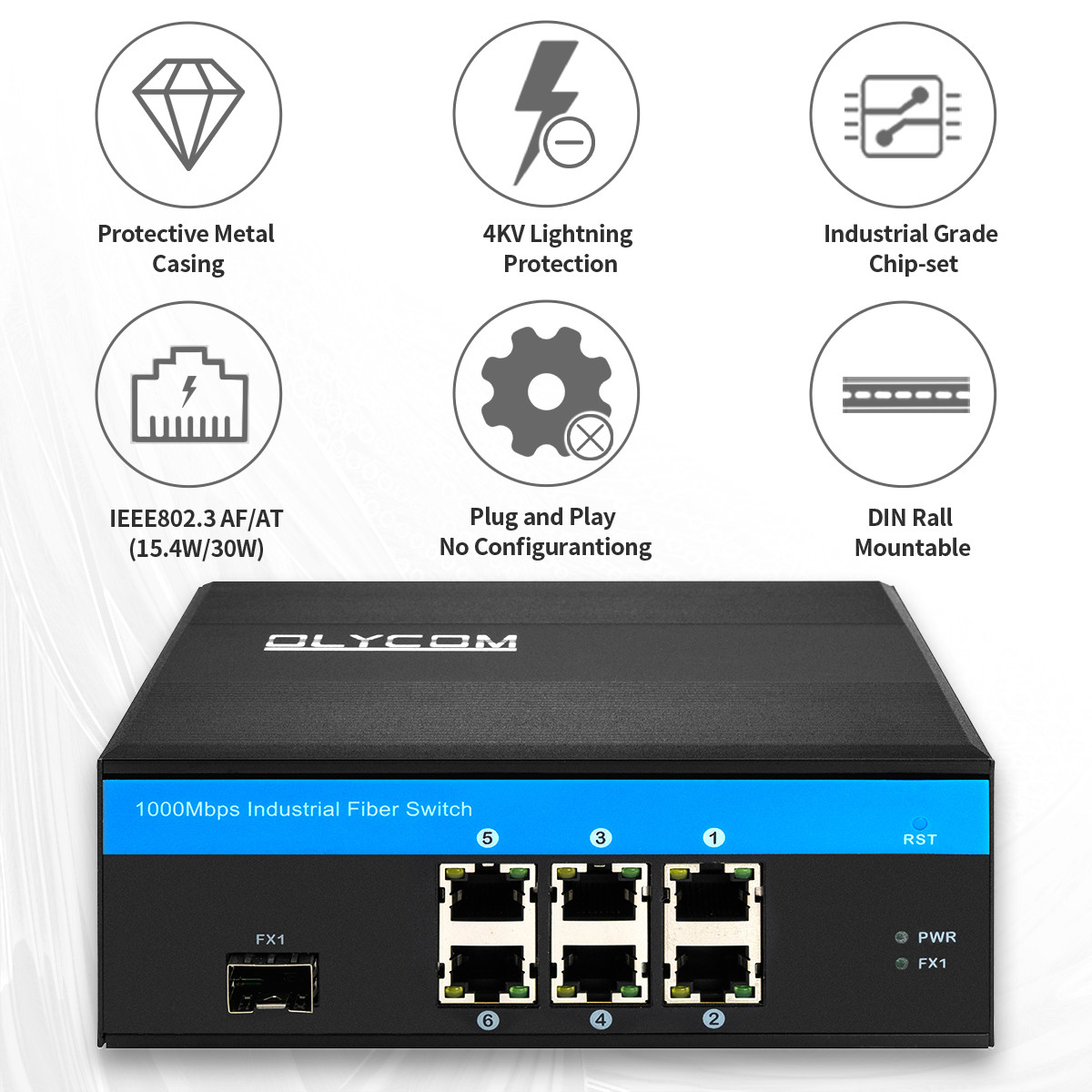 6 پورت گیگابایت صنعتی PoE سوئیچ غیر مدیریت شده